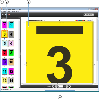 | 4 | Ferramentas de navegação para folhear a tarefa e exibir o número da folha |