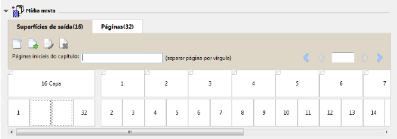 As miniaturas na linha superior representam a ordem real de impressão na copiadora/impressora. A segunda linha mostra quais páginas serão impressas em quais folhas. Por exemplo, na imagem abaixo, a folha de capa inclui o conteúdo das primeiras duas páginas do documento como a capa frontal, o conteúdo da antepenúltima página como a lombada e o conteúdo das últimas duas páginas do documento como a capa traseira.