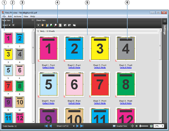 | 6 | 「紙張檢視」中的縮圖 | 請參閱 JobMaster 說明中的「關於檢視紙張」。 |