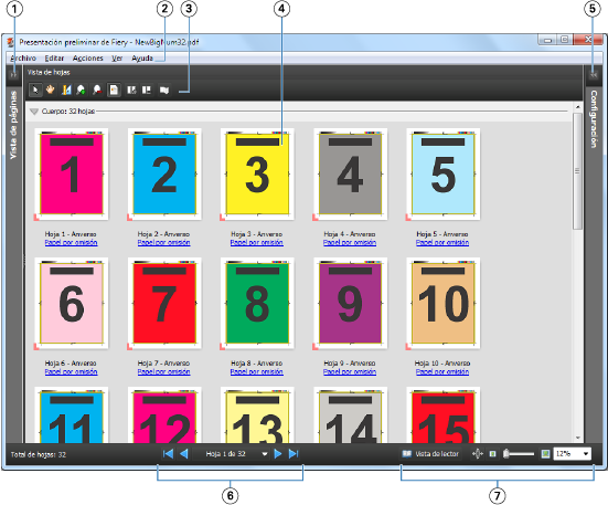 | 4 | Miniaturas en la vista de hojas | Consulte Acerca de la visualización de las hojas en la Ayuda de JobMaster |