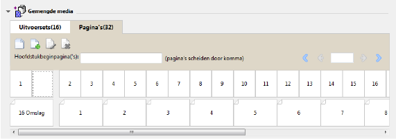 De afbeelding toont een taak weergegeven als pagina’s. Het getal achter “Pagina’s” op het tabblad geeft het aantal documentpagina’s aan, die worden weergegeven als miniaturen in de bovenste rij. De pagina’s worden weergegeven in lineaire volgorde, overeenkomstig de logische leesvolgorde van het brondocument.