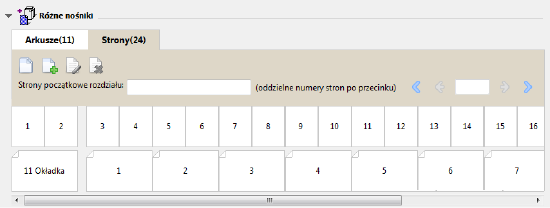 Można wybrać opcję wyświetlania stronicowania zadania według stron lub według arkuszy. Strony i arkusze dokumentu są wyrównywane względem siebie, co umożliwia ustalenie arkuszy, na których zostaną wydrukowane określone strony.