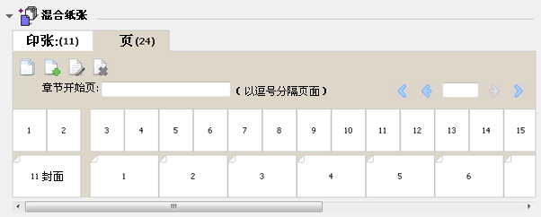 您可以选择根据页面数或印张数显示作业的分页。文档的页面数与印张数相对应,因此可以查看哪些页面将在哪些印张上打印。