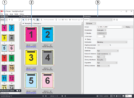 | 1 | Miniatury w okienku Widok strony | Zapoznaj się z tematem „Otwieranie i wyświetlanie zadań” w Pomocy aplikacji Fiery JobMaster-Fiery Impose-Fiery Compose. |