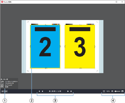 JavaScript must be enabled in order to use this site.Please enable JavaScript in your browser and refresh the page. 開啟 Reader 檢視 Reader 檢視會顯示「閱讀範圍」,此模式會依照適合閱讀的頁面順序和配置來顯示內容。 在 Command WorkStation 的已保留清單中,以滑鼠右鍵按一下未處理工作,然後選取預覽。 如果 Fiery Impose、Fiery Compose,或 Fiery JobMaster 的授權已經啟用,您就可選取這些應用程式。 在視窗中將設定套用至工作,然後儲存。 按一下底端工具列中的 Reader 檢視圖示。 使用視窗底部的箭頭來導覽整份文件。縮放控制項位於右側。 符合頁面圖示符合視窗的影像。 按一下底材資訊以顯示文件資訊。 按住Alt鍵和左滑鼠鍵,旋轉文件。轉動滑鼠滾輪則可縮放影像。 1 顯示的頁面底材資訊 2 顯示的文件頁面 3 導覽控制項 4 縮放控制項 父項主題: 預覽已多工緩衝處理,但尚未處理的工作
