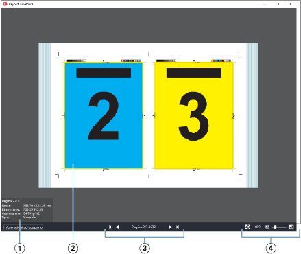 1 Informazioni sul supporto delle pagine visualizzate 2 Pagine visualizzate del documento 3 Comandi di navigazione 4 Comandi zoom