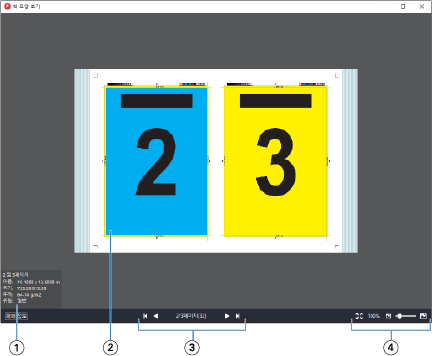 1 표시되는 페이지에 대한 용지 정보 2 표시되는 문서의 페이지 3 탐색 컨트롤 4 확대/축소 컨트롤