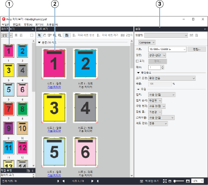 | 3 | 설정 창 | Fiery JobMaster-Fiery Impose-Fiery Compose 도움말에서 "Fiery Impose"를 참조하십시오. |