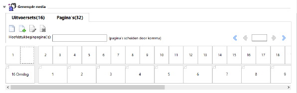 De afbeelding toont een taak weergegeven als pagina’s. Het getal achter “Pagina’s” op het tabblad geeft het aantal documentpagina’s aan, die worden weergegeven als miniaturen in de bovenste rij. De pagina's worden weergegeven in lineaire volgorde, overeenkomstig de logische leesvolgorde van het brondocument.