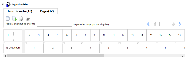 L’illustration suivante montre la visualisation d’une tâche sous forme de pages. Le chiffre qui figure après l’intitulé Pages de l’onglet correspond au nombre de pages du document, ces pages étant représentées par les chemins de fer dans la ligne du haut. Les pages sont affichées dans un ordre linéaire qui correspond à la logique de lecture du document source.