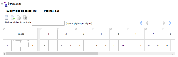 As miniaturas na linha superior representam a ordem real de impressão na impressora. A segunda linha mostra quais páginas serão impressas em quais folhas. Por exemplo, na ilustração seguintes, a folha de rosto inclui o conteúdo das duas primeiras páginas do documento como a capa da frente, o conteúdo da terceira última página como lombada e o conteúdo das duas últimas páginas como contracapa.