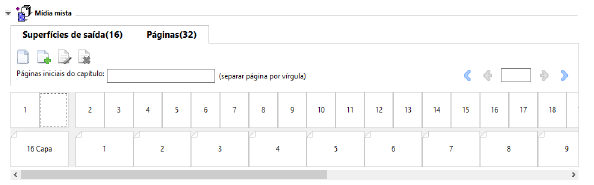 A ilustração mostra uma tarefa exibida como páginas. O número após Páginas no separador indica o número de páginas do documento, que são representadas pelas miniaturas na linha superior. As páginas estão representadas em ordem linear, correspondendo à ordem lógica de leitura do documento de origem.