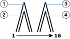 A ilustração a seguir mostra as assinaturas de imposição para um documento de 12 páginas imposto para encadernação em sela pela borda esquerda: