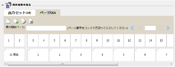 下記は、ジョブのページ表示です。タブ上の「ページ」の後の数字は書類ページ数で、各ページは最上段にサムネールで表示されます。各ページはソース書類を普通に読む順序で表示されます。