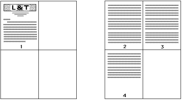• Jika aplikasi anda boleh menggabungkan tataletak, orientasi dan tetapan penskalaan dan memperuntukkan tetapan yang berbeza untuk pilihan ini ke pelbagai bahagian dokumen, tataletak berbilang halaman dicetak seperti yang dijangkakan, seperti yang ditunjukkan dalam grafik berikut.