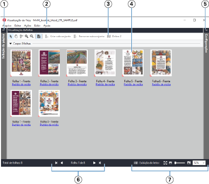 7 Controles de zoom Consulte Definir a Visualização da folha como miniaturas ou páginas inteiras no Fiery Compose e Ajustar tamanho da miniatura.
