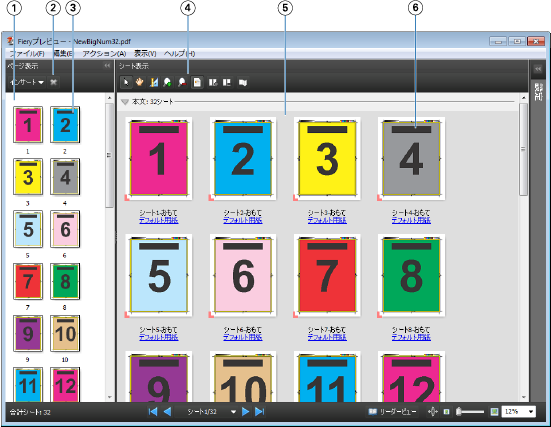 | 6 | 「シート表示」のサムネイル | Fiery Composeでジョブを開いて表示するにはを参照してください。 |