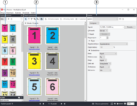 | 1 | Sayfa görünümü bölmesindeki küçük resimler | Bkz. Fiery Compose içinde işleri açma ve görüntüleme. |