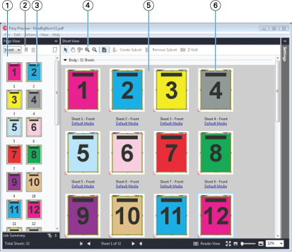 | 6 | Thumbnails in Sheet View | See Set the Sheet View to thumbnails or full pages in Fiery Compose and Adjust thumbnail size. |