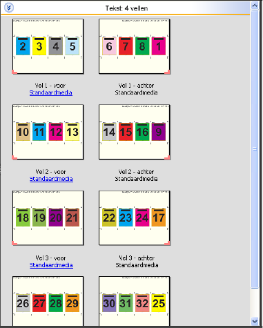 De opmaak 4 per vel; uitvouwblad is bedoeld voor taken met veelvouden van vier pagina's, maar u kunt deze opmaak ook gebruiken voor taken met een ander aantal pagina's. In Impose worden zo nodig blanco pagina's toegevoegd.