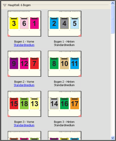 Das Layout Dreifachfalzbroschüre ist für Auftragsdokumente konzipiert, die sechs Seiten haben oder deren Seitenanzahl ein Vielfaches von sechs ist. Es kann aber auch für Dokumente mit einer abweichenden Anzahl von Seiten verwendet werden. Fiery Impose fügt bei Bedarf zusätzliche Leerseiten ein.