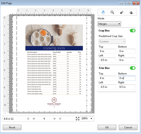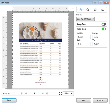 Select Margin or Size And Offset to make Crop Box and/or Trim Box adjustments.