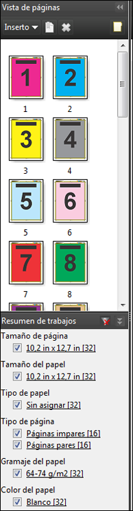 JobMaster si el panel Resumen de Trabajos no aparece, haga clic en las flechas en la barra Resumen de Trabajos en el panel Vista de páginas