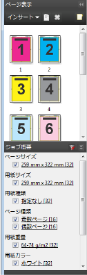 ジョブ概要ペインで、ページ数の多いジョブのセクションをフィルタリングして選択できます。