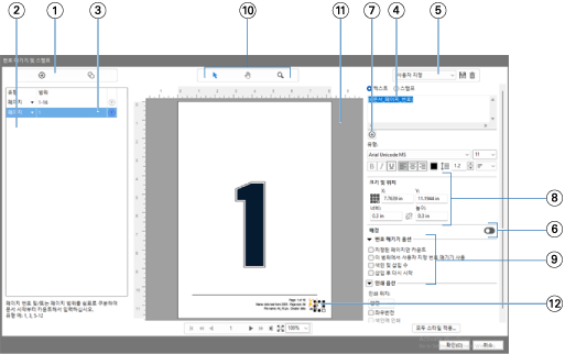 번호 매기기 및 스탬프 창은 고급 페이지 번호 매기기를 위한 작업 영역을 제공합니다.