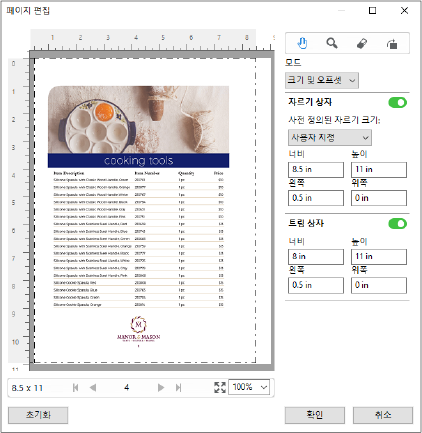 페이지 편집은 페이지 자르기 상자 또는 트림 상자 크기를 조정하여 페이지 내용을 자르거나 이동하는 데 사용할 수 있습니다.