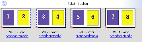 Duplo - korte kant: hiermee stelt u een paginering in met een richting waarmee het laatste gedrukte vel met de korte kant in een Duplo-afwerkeenheid kan worden ingevoerd. De kolommen of rijen worden loodrecht op de kortste kant geschikt.