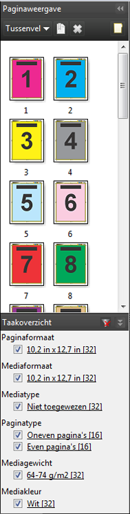 JobMaster wordt geopend en het deelvenster Taakoverzicht niet wordt weergegeven, klikt u op de pijlen in de titelbalk Taakoverzicht onder het deelvenster Paginaweergave.