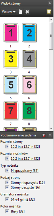 JobMaster okienko Podsumowanie zadania nie jest wyświetlane, kliknij strzałki na pasku tytułu Podsumowanie zadania znajdującym się poniżej okienka Widok strony.
