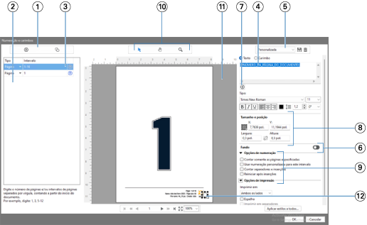 | 12 | Campo para exibição de numeração de página, que pode ser redimensionado e movido. |