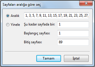 Sayfaları aralığa göre seçme