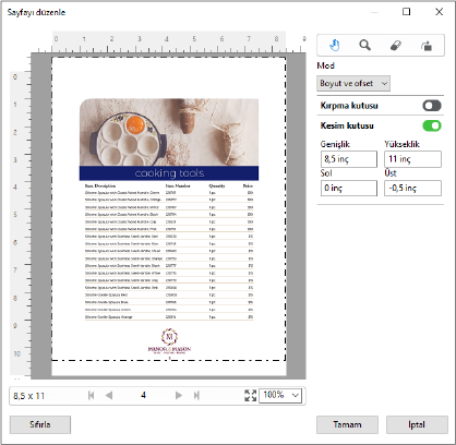 Sayfayı düzenle, sayfa Kırpma kutusu veya Kesim kutusu boyutunu ayarlayarak sayfadaki veya sayfalardaki içeriğin kırpılması veya taşınması için kullanılabilir.