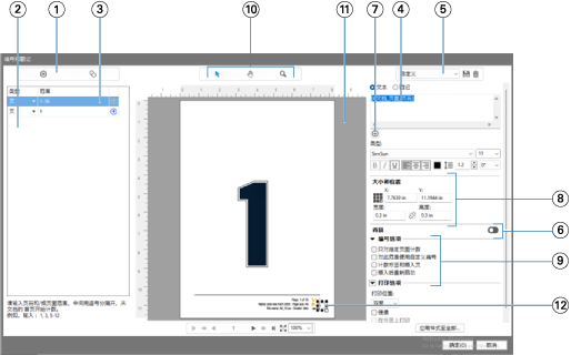| 12 | 页面编号显示字段可进行大小调整和移动。 |