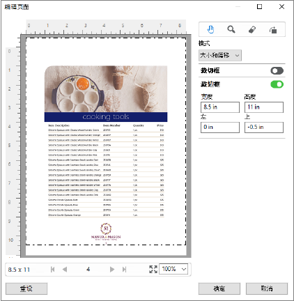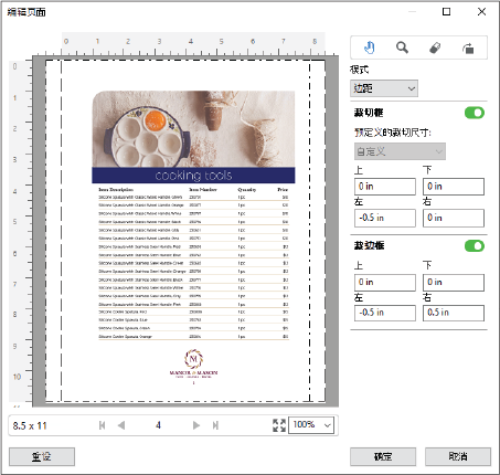 编辑页面可用于通过调整页面裁剪框或裁切框大小来裁剪或移动页面上的内容。