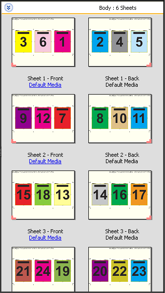 The 3-up trifold brochure layout is for jobs that have six pages or multiples of six pages, but you can use it with jobs that have any number of pages. Fiery Impose Plus adds additional blank pages as necessary.