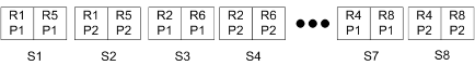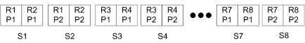 pages per record, 1 row x 2 columns layout, simplex. R = Record, P = Page, S = Sheet