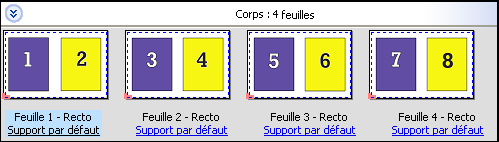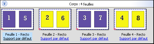 L’option Une fois place les pages dans un ordre qui convient souvent mieux pour l’impression de la tâche en un seul exemplaire. Cette option ne permet pas un assemblage complet (un assemblage manuel est nécessaire), mais elle optimise le format de feuille tout en limitant le tirage à un seul exemplaire.