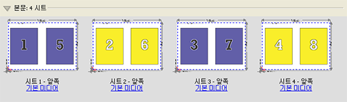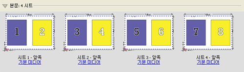 Duplo - 짧은 가장자리는 최종 인쇄 시트를 시트의 짧은 쪽에 있는 Duplo 마감기로 급지할 수 있도록 페이지 매김 방향을 설정합니다. 열이나 행은 가장 짧은 쪽 급지에 수직 방향입니다.