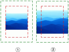 Nos diagramas, a linha pontilhada vermelha mostra o tamanho do acabamento e a linha pontilhada verde mostra o tamanho do sangramento.